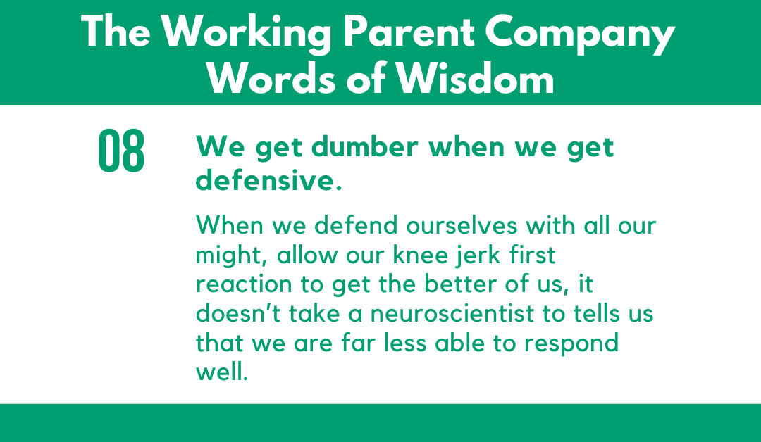 The behaviour of others – children, peers, bosses – can trigger us to enter a defensive mode projecting righteous indignation or poor me victimhood. It also makes us less able to respond in a smart way.